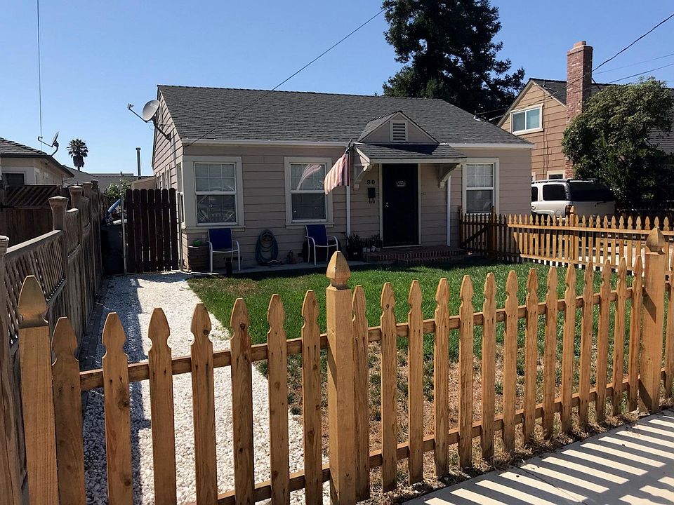 Quite the charmer on Locust Ave. This home has afence in the front yard for your little ones to play! There is also a nice size backyard as well as a fire pit covered and patio area. The 2 bedroom 1 bath has newer paint throughout and Tile in the bathroom. New sink and fixtures. Furnace is 6 months new. fence is 6 months new. There is an additional unit for a rec room or studio in the garage space. please come see for yourself. Nice size lot with a lot of potential 2 Storage sheds in backyard stays