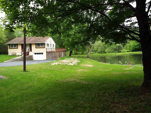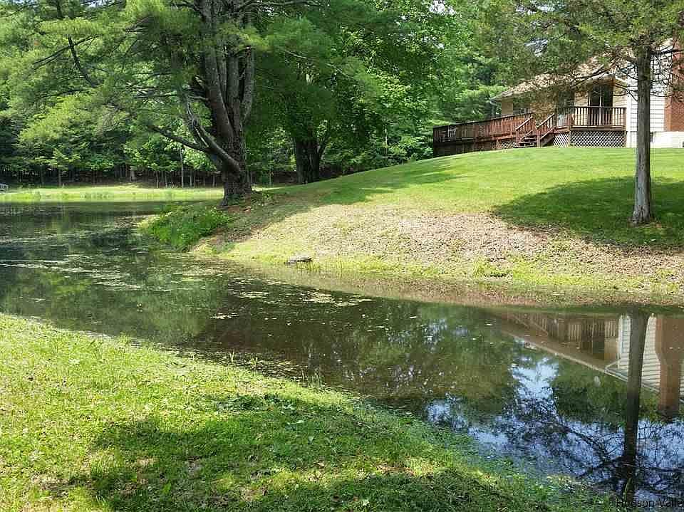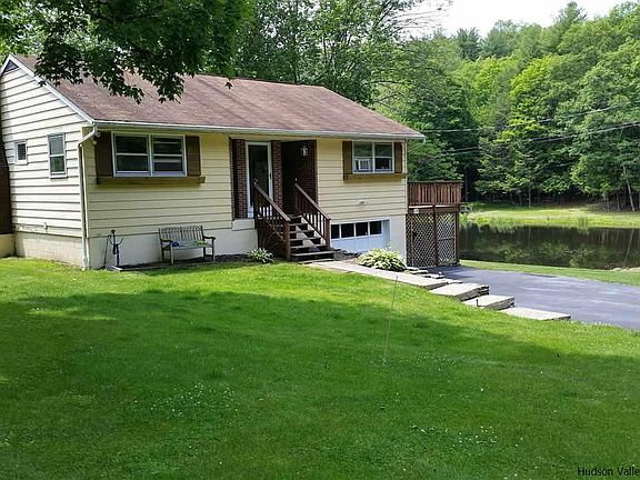 Are you looking for peace and serenity? This is an easy living ranch in a fabulous location! Beautiful setting with large pond, large enough to pedal boat in, a mix of lush green grass & woods. Sit on your deck & relax in the hot tub enjoying nature. In the winter months cozy up to the fireplace in the living room. Open floor plan, hardwood floors, finished basement, one car garage.Long blacktop driveway so easy to maintain. This is the PERFECT get-a-way house for all seasons, 20 min. to Hunter Mountain, 15 minutes to Woodstock, 10 Minutes to the village of Saugerties. The electric heat makes it so easy to leave in if your a snowbird or a weekender.