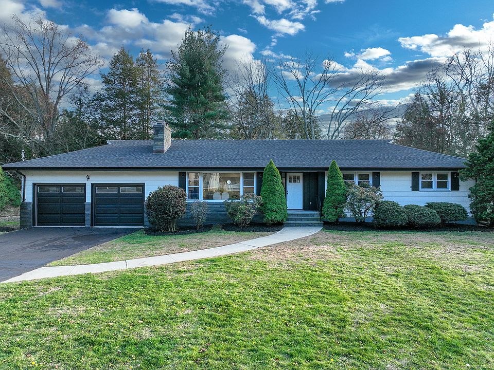 Move-In Ready Modern Ranch - Fully Renovated with Designer Finishes! Discover this beautiful 4-bedroom, 2-bath ranch tucked away on a quiet cul-de-sac with a level .43-acre lot and the peaceful Horse Tavern Brook along the property line. Enjoy a bright open-concept floor plan with gleaming hardwood floors, a stone fireplace, and a gourmet kitchen featuring high-end black stainless-steel appliances, quartz countertops, and custom cabinetry. The oversized primary suite offers a luxurious tile bath, while three additional bedrooms and a fully updated main bath complete the space. Step out to a large patio overlooking a private backyard, ideal for entertaining. Updates include a new roof, vinyl windows, electrical, HVAC, and an oversized two-car garage. Turn-key, energy-efficient, and move-in ready! Owner is a licensed real estate agent.