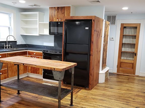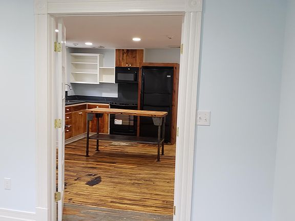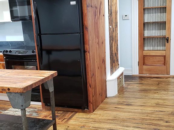 One-bedroom apartment on Historic Main Street, Newmarket, NH. Second-floor unit with unsurpassed views of Main Street and the mill. Enjoy this 19th-century building boasting upcycled modern flair. Designed by Maine craftsman, Nick Cressey. The construction was approached with care to preserve the building's character, and minimize the ecological footprint. Looking closely, you'll see pieces salvaged from places including, but not limited to, the Phillips Exeter Academy Library, The Wedding Cake house in Kennebunkport, and the Thorne house here on Main Street! The large comfortable bedroom has two bright windows looking out at town. The view is framed beautifully by the antique casings and blocks. Looking out at Newmarket through these windows can really take you back in time. French doors lead from the bedroom into the kitchen and living space. The kitchen is well equipped with gorgeous stone countertops, a butcherblock island, and a large wooden pantry cabinet. The 3/4 bath has new fixtures and a one-of-a-kind antique sewing cabinet vanity. The apartment is equipped with a mini-split system providing air conditioning/heat on demand. Restored hardwood flooring throughout! **Location Location Location Positioned in the heart of downtown Newmarket, you can smell the enticing aromas of Wing-itz and Crackskulls just next door. Walk to shops and restaurants. Enjoy NH's only cat cafe just below your feet at The Tipsy Tabby! Convenient access to the University of New Hampshire. So much character is packed into this 550sqft one-bedroom apartment. It really is a must-see. Hot Water/Sewer are included in the rent. Tennant pays electricity, cable, etc. No parking onsite, nearby public spots are available from the Police Station. Pet rent is $10/month with an additional $200 pet deposit. No smoking allowed in the apartment.