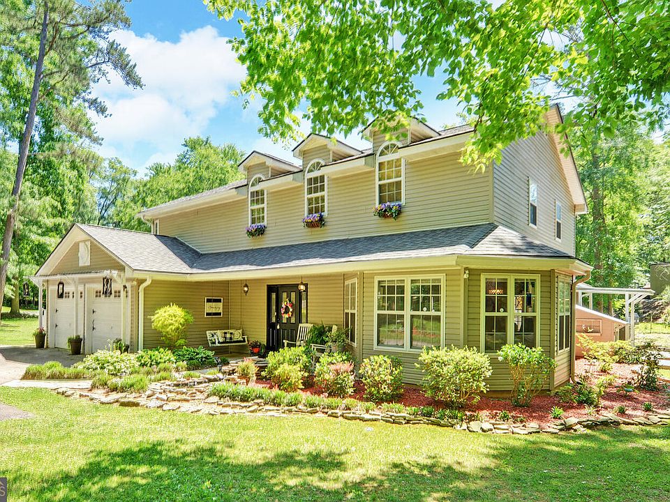 Welcome to your dream waterfront home on Lake Hartwell! Feel the love as you arrive and step beside a charming koi pond, with a cozy porch adorned with everything to make you feel at home. The stunning two-story foyer entry is a true show stopper, highlighted by a custom-built in cabinet adorned with handcrafted art depicting the water view, mountains, and Long Nose Falls visible from the shoreline. The oversized great room is bathed in natural light, featuring an electric fireplace for cozy ambiance and a hidden nook behind the bookshelf-a delightful play area for the kiddos. The kitchen has custom countertops featuring a river pattern, a stone river rock backsplash, a stainless farmhouse sink, a breakfast bar, and a built-in buffet in the dining area. A natural gas fireplace warms the space, creating a welcoming seating area. Off the kitchen, you'll find the laundry room and a fun bunk room, converted from the garage. The main floor also includes a full bathroom. Upstairs, the fabulous owner's suite boasts trey ceilings, a walk-in closet, and an ensuite bathroom that is to die for! It features a walk-in shower, soaking tub, double vanities, and the unique river rock theme continues. The upper level includes three additional bedrooms (four total upstairs) and another full bathroom. Outside is pure paradise! The screened-in porch just off the back door is perfect for relaxing, and even the family dog has its own entrance and house nearby. The above-ground pool and hot tub have been family favorites, and if the new owners don't want them, the sellers will take them to their next home (negotiable). Approaching the water's edge, you'll see how loved this spot has been by the whole family-paddle boating, relaxing in Adirondack chairs to watch the sunset, kayaking on the pristine lake, or beaching your pontoon for adventures. This home is a perfect blend of comfort, luxury, and fun, offering everything you need for an idyllic lakeside lifestyle. Don't miss the opportunity to make it yours! Recent upgrades include: New AC unit 2022, new roof May 2023, conversion to natural gas May 2024, Sentricon Bait system 2024, Septic Clean out May 2024.