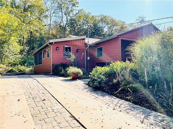 Welcome to your very own private oasis, only minutes from Downtown Ithaca. This beautiful 2-3 bedroom Ranch style home has been tastefully updated with a modern feel, while offering the feeling of being secluded on a wooded lot. As you enter the front door, you are greeted by a generous foyer that leads to the stunning kitchen. Granite countertops, newer appliances, coffee/wine bar, breakfast bar, unique tile backsplash and unlimited cabinet space are just the beginning to what this kitchen offers. Off the kitchen is a bright three-season room that leads to a peaceful patio space. The comfort of one story living is offered with the cozy living area, formal dining room, 2 bedrooms and full bathroom all on the main floor. The stone wood-burning fireplace is perfect for those chilly winter nights. Great space for entertaining with the serene back yard and new composite deck off the formal dining area. Finished space in the walkout basement is sure to offer you the extra room you're looking for. Don't miss your chance to make this home your own before it's gone!