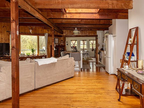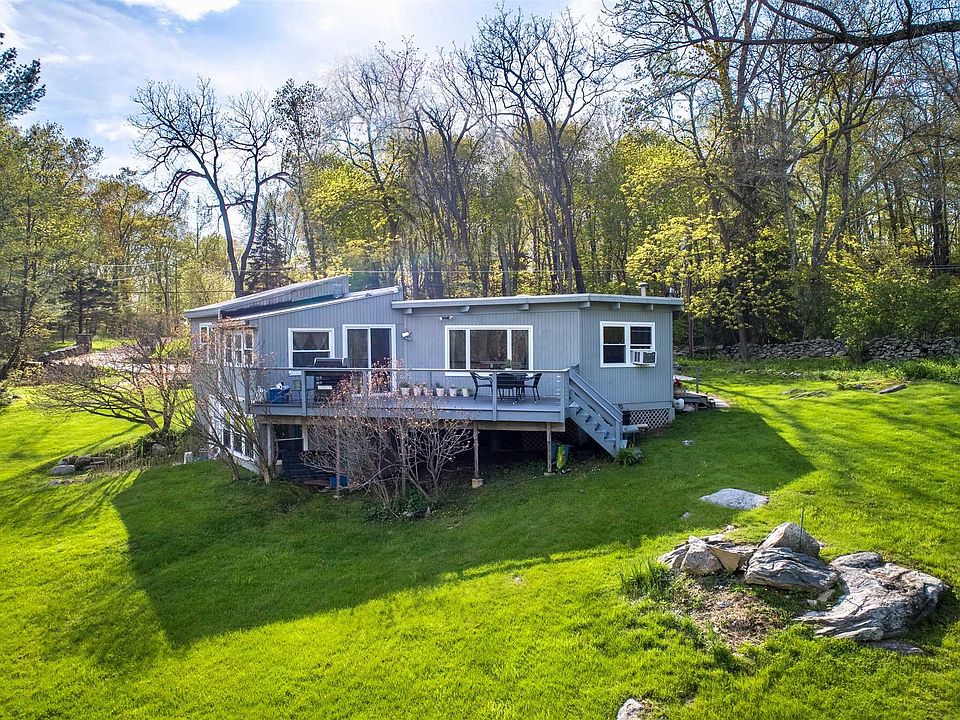 Located on a quiet country lane with a sweeping lawn, picturesque stonewalls and enchanting woods, is the perfect simple home for anyone seeking quiet beauty and solitude. The 2,114 SF octagonal home set on 5 acres is in harmony with its natural surroundings. The floor plan enables large windows and sliding glass door to surround the living space with views of the idyllic setting. An addition was added and in 2016 the home underwent a well-planned, stylish renovation. Enter the home to a 22 x 35 open floor plan encompassing the living room and new kitchen. With a perfect balance of rich wood accents and crisp white walls, the decor of the home could easily pivot to a more modern feel with the Scandinavian influences found throughout. Sliding glass door from the dining room leads to the walk-off deck, while two bedrooms, both en-suite and a den, complete the first floor. Downstairs, a family room, office and laundry area with access to the side yard. Retreat to the outdoors and enjoy the natural surroundings with ample acreage for both a barn and pool. If peace, tranquility and views are what you are seeking, look no further. This is a perfect sanctuary for year-round living or a weekend retreat, less than 80 minutes to NYC.