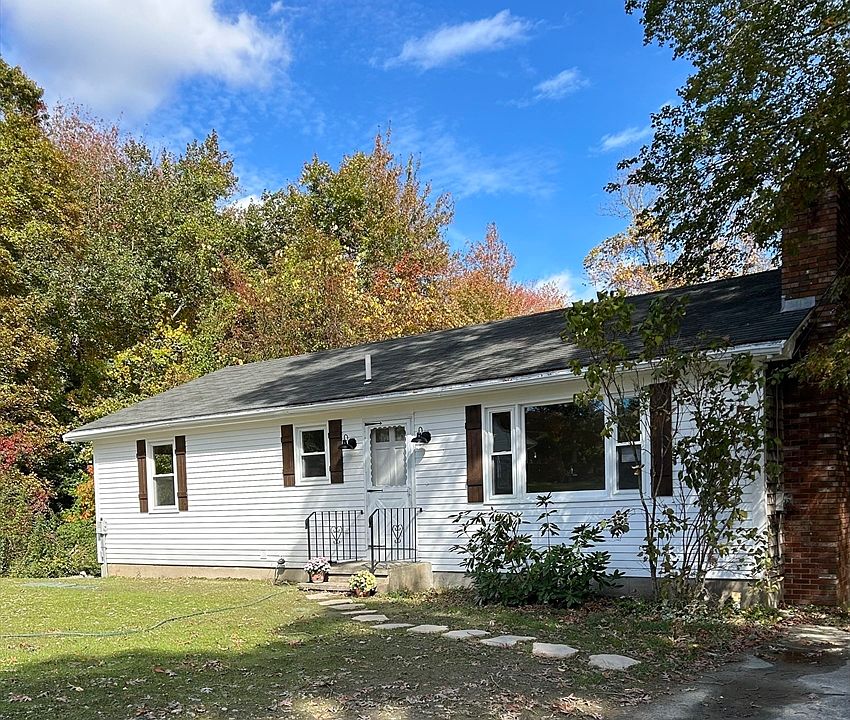 Privacy Alert: This 3-bedroom, 1-bath ranch is tucked away at the end of a quiet cul-de-sac with protected land behind the property, ensuring no future development. Move-in ready and designed for easy one-level living, this home features a brand-new furnace, new above ground septic system, new flooring—including refinished hardwood in the bedrooms—and updated windows and slider. The bathroom and kitchen are beautifully updated with granite and quartz countertops. Relax by the fireplace in the cozy living room, or step onto your private back deck for a peaceful retreat. The full walk-out basement provides ample storage or the potential for added living space. This serene, secluded location is under 5 miles from I-195, Route 6, and Route 103, giving you privacy without sacrificing convenience.