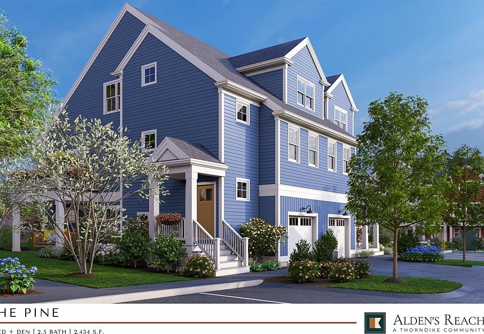 The Pine Plan has an $15,000 credit to be used towards your choice of designer upgrades. The Pine has so much to offer—the convenience of primary one-floor living, plus the flexibility to meet many different needs! Welcome to an expansive and airy open plan one level up from your ground level entry. Your living, dining and kitchen areas extend even farther when you step out onto your private deck. On the same floor, tucked away off the entry landing is the primary bedroom suite with a walk-in closet and private den. The generous loft on the upper floor can be an office, library, craft room…you name it. A second bedroom suite with oversized walk-in closet ensures privacy and welcomes guests and a full bath on that floor. This is one-floor living PLUS! A multi-generational community of detached and attached homes by award-winning Thorndike Development. At Alden’s Reach, you’ll be part of a traditional neighborhood with access to the woods, pond, and conservation land beyond.