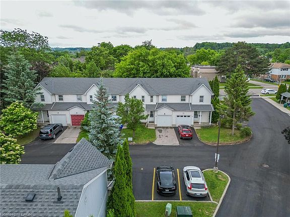 Welcome to beautifully renovated 3-bedroom, 2-bath townhome located in family-friendly neighborhood of Victoria Hills. This carpet-free home features hardwood floors throughout and is filled with natural light. The fully renovated eat-in kitchen boasts ample cabinetry, elegant quartz countertops, and high-end stainless steel appliances. The main floor includes a stylish powder room and an open living/dining area with a walkout to a fully fenced backyard with a deck and mature trees. Upstairs, you’ll find three generously sized bedrooms, including a primary bedroom with a walk-in closet, as well as a modern 4-piece bathroom. The unfinished basement awaits your finishing touches. Recent updates throughout the home within the past two years add to its move-in-ready appeal. Located close to parks, trails, golf courses, the Grand River, St. Mary’s Hospital, schools, and more—this is a fantastic opportunity for families or first-time buyers. Don’t miss out-schedule your private showing today.