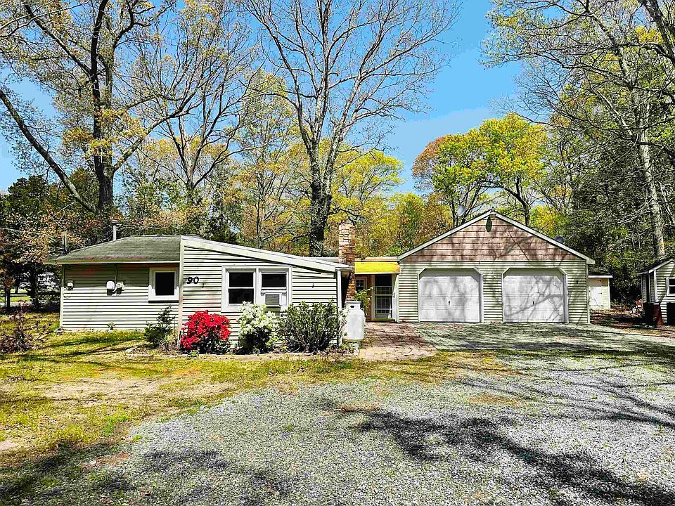 Welcome to 90 South Mount Airy Avenue, where tranquility meets convenience in the heart of Egg Harbor Township, New Jersey. Nestled on a serene wooded lot, this charming 1 bedroom, 1.5 bathroom home offers a peaceful retreat from the hustle and bustle of everyday life. As you approach, you'll be greeted by a picturesque scene - the house sits off the road, accessible by a long driveway adorned with elegant pavers and flowering landscape. With a 2 car attached garage, parking is never a concern, providing ample space for vehicles and storage. Step inside and discover the rustic allure of exposed beams in both the office and kitchen, adding character and warmth to the space. Skylights drench the interior with natural light, creating an inviting atmosphere throughout. The functional layout includes a convenient laundry room complete with a utility sink, making household chores a breeze. Additionally, the property boasts 3 outbuildings, offering endless possibilities for storage or work space. Offered as is, this property presents a rare opportunity to customize and make it your own. Enjoy the convenience of city sewer and water services, simplifying maintenance and enhancing your quality of life. Experience the perfect blend of rural charm and urban convenience at 90 South Mount Airy Avenue. Schedule your private tour today and discover the endless possibilities awaiting you in this unique property.