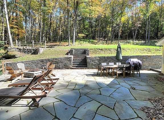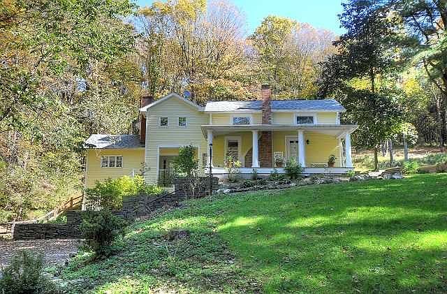 This quintessential turnkey private country retreat on 20 acres offers the best of both worlds. The original country farmhouse built in 1930 was expanded on with a modern twist taking advantage of the natural topography with a seasonal water fall, immense stone patios and sweeping lawns. The original house has been well preserved with wide board floors, a beautiful fireplace and original moldings. The newer addition features an open living concept with soaring ceilings, walls of glass an additional fireplace and wood stove. The home easily lends itself to entertaining with large open indoor spaces and very special outdoor spaces including multiple bluestone patios and walls. There are two separate outbuildings and a two car oversized garage. The current owner has established a trail system through the property. Many updates, sunlight spaces, exceptional charm.