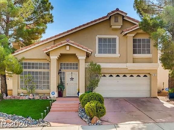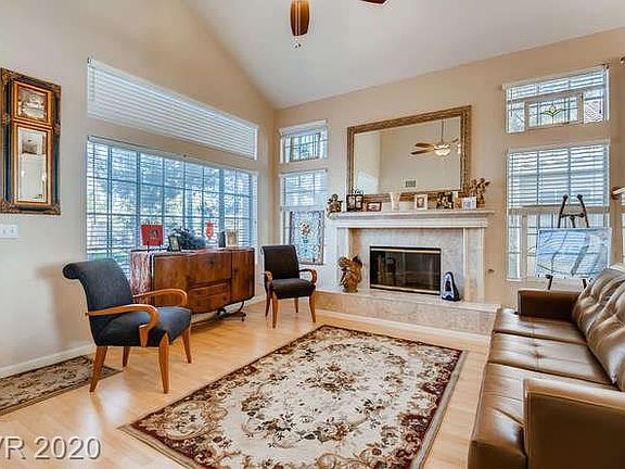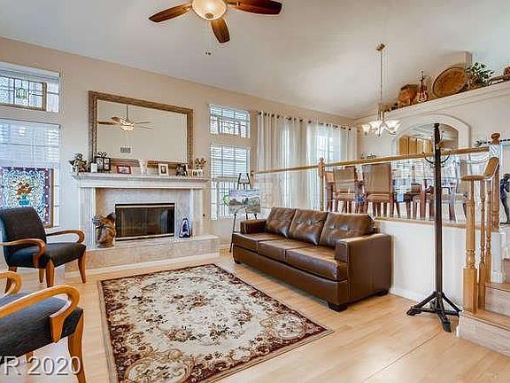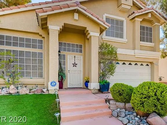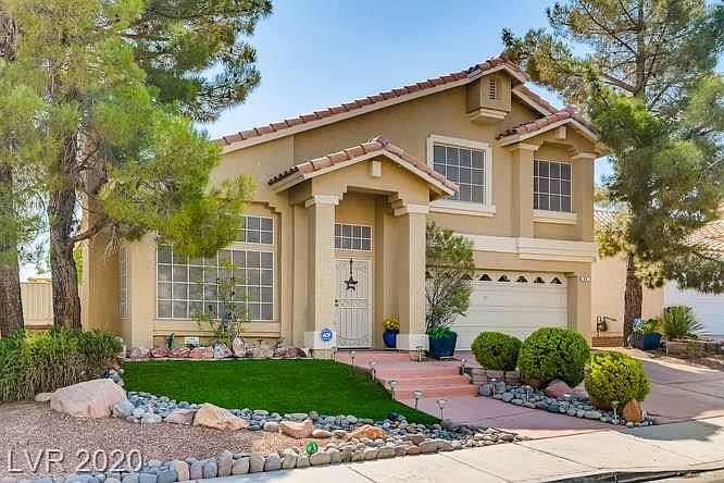 3bd, 2.5ba Henderson home on a golf course lot! Entertainer's backyard, remodeled KIT & bright interior! Wood-like flooring, lgwindows, recessed lighting & vaulted ceilings throughout main floor. Formal LR w fp, formal DR w chandelier lighting & serving hatch! KIT w island, bar seating, solid surface countertops, BI-wine cooler under cabinets, SSappliances, glass tile backsplash, under cabinet/track lighting & pantry! KIT & FR w sliding glass doors for backyard access. Tile lined gas fp! 1/2 bath downstairs for guests. Upstairs primary suite w sitting area, WIC, dbl vanity, jacuzzi tub w chandelier lighting & shower! 2 bdrms are sizable & share a bathroom w shower/tub! Backyard w multiple seating areas, covered patio, ceiling fans, 2 hot tubs & mini putting green! Mature trees & plants provide shade, w golf course views! epoxied 2 car garage, laundry w storage, Central A/C, Forced Air heat, water softener & self serving water system. Located close to shopping, dining, parks & I-215!