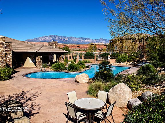 Beautiful, Luxury condo at Coral Springs, Just off exit you take to Zion's National Park which is 30 minutes away!. Central Located and right off the HWY next to Coral Canyon Golf Course. Five minutes from downtown St. George. No location like it! This unit is the lower level and the closet unit there is to the pool, club house, tennis courts, basketball courts, and workout room. Most wanted and in demand unit in the complex. Their is an indoor pool and hot tub and also an outdoor heated pool and hot tub. Underground parking to keep your vehicles out of the sun, basketball court, tennis courts, exercise room ect. Inside unit: The Master is meant to make you feel spoiled. $6000.00 Temperpedic pillow top mattress, 65 in TV, with Apple T.V. Massive Bathroom with Jetted tub, walk in travertine shower, double sinks, hairdryer, and a huge walk in closet. Doors off the master lead to front private deck with outdoor dining, barbaque and fireplace- romantic and great for entertaining and enjoying the beautiful St. George weather. Gorgeous views of the mountains and just a step away from a gas station for your convenience. The second Master has a king bed and a 55 inch T.V. which also includes Apple T.V. and a view of the Swimming Pool. The third bedroom has two full bunk bed sets to sleep 8 plus kids and of course a T.V for them set up with Apple T.V. also so your set with hundreds of movies for them. Wifi is also included. This room has Direct View of the swimming pool and clubhouse. The Guest bathroom is VERY spacious with a tub/shower combo, hairdryer, and hamper. There is a laundry room on site so you can pack less and leave with clean clothes. VERY beautiful kitchen stocked with all the necessities- coffee maker/filters, teapot, toaster, electric can opener, pots/pans, casserole dishes, dishes for 8, mugs, wineglasses, silverware, electric mixer, blender, platters, cookie sheets and spoons, whisks, spatulas, knifes, measuring cups, ect. Big square dining table that seats 8 and doors off of it to the outdoor deck and fireplace. Family room has 2nd fireplace, 70 inch T.V. Apple T.V, and leather couch with 5 recliners and view of pool and deck. RELAX and enjoy your stay at St. George with the ultimate luxury offered. Beautiful move in or rental ready. Includes all furnishings. Indoor & outdoor pool. Five minutes to 2 golf courses & 2 reservoir's for fishing & boating. Unit is a zoned nightly rental . Large clubhouse & workout room. Tennis court & BB court. Quick I 15 access. Underground parking & storage. Two fireplaces, Pine Valley views. Huge covered patio w/ fireplace.