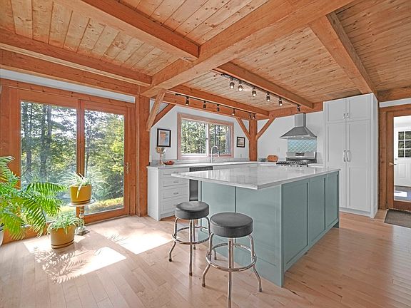 Custom Post & Beam on 13+ acres in historic Royalston! This stunning home offers privacy just minutes from the Royalston Common. Featuring 3 bedrooms, 1.5 baths, maple floors, exposed beams, and expansive windows, it blends warmth and character with modern comfort. The 3–4 season sunroom with wood stove feels like living among the trees, while upstairs bedrooms with vaulted beamed ceilings are filled with light and scenic views. The main level offers an open flow with a sun-filled new custom kitchen featuring quartz countertops, built-ins, and a large island. A central fireplace anchors the dining and living areas, showcasing seasonal views of Wachusett. A first-floor office is perfect for remote work. Surrounded by trails and waterfalls, this property combines charm, tranquility, and convenience—just 30 minutes to Keene and 45 minutes to Greenfield or Fitchburg. Schedule a showing to experience the beauty and tranquility yourself!