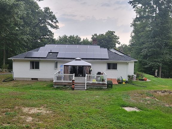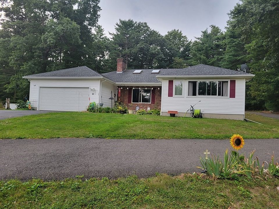 Country living in this beautiful ranch home! Your first steps in, you are greeted with a gorgeous floor to ceiling fireplace, cathedral ceilings, skylights, hardwood floors which open right up to the oversized kitchen. This space flows great for entertaining. Your kitchen has lots of cabinets, granite countertops and a new slider to walk out to your deck and backyard space. Three bedrooms with new hardwood floors and great closet space, two bathrooms, and a huge cellar for laundry, storage or more rooms down the road because the seller installed a new bulkhead. Two car garage attached to the house and second garage out back that can store three cars or toys you may have. It has office space, man cave or she-shed possibilities with the attached room (now used for storage). New Anderson windows, exterior doors, storm doors have been installed throughout home. There is Central Air, Central Vac and so much more! Come and See!
