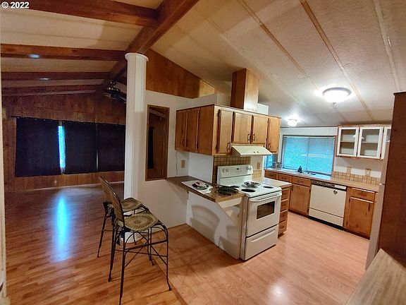 Amazing view, quiet street, well maintained park, great location, wonderful covered deck and a larger than average area outside for gardening and more! Inside, enjoy the open floorplan, vaulted ceiling with wood beams, spacious primary bedroom and newer twin mini/splits w/heat pumps. CAUTION: new storm drains, sidewalks and a new road surface are being installed. Monthly space rent is $495 and includes sewer and garbage. $25 monthly for water. Seller will provide a home warranty valued at $420!