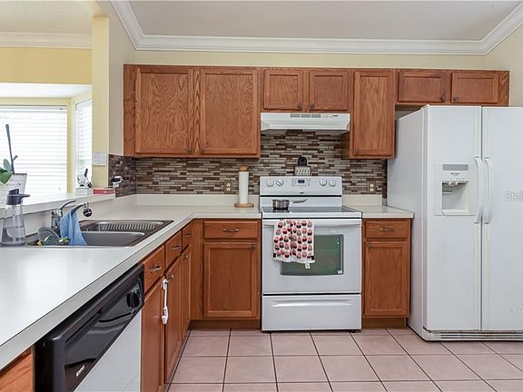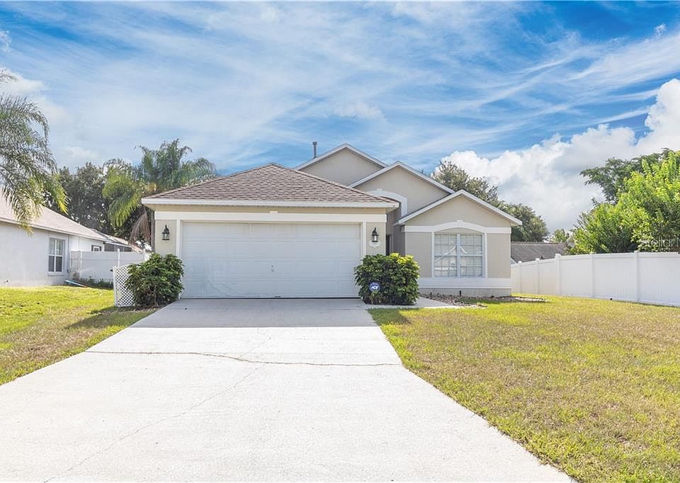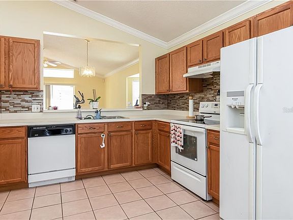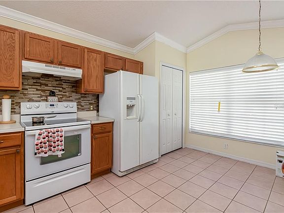 Calling all first time home buyers, investors, and those looking for a personal vacation home- this is the one for you! This immaculately maintained pool home is ready for its next owners. This home got a NEW ROOF in 2018 and also includes a new water heater and dishwasher. Step inside to find an open floor plan with the kitchen, dining space, and family room all in the same area making entertaining among friends and family easy and enjoyable. The kitchen is equipped with ample counter space for the home chef to prepare meals as well as solid oak cabinets and an optional eat-in kitchen space which some choose to use as addition storage or food prep space. The dining space provides extra seating and character with a custom built window seat. The split bedrooms allow everyone to enjoy the peace and quiet of their own private space. Both of the bathrooms have been beautifully upgraded to include custom vanities featuring granite counter tops. The main living space is floored with ceramic tile in the kitchen and laminate wood in the dining space and family room, and all 3 of the bedrooms have been newly carpeted. Crown molding is seen throughout the home for even more elegance and character. THE FUN HAS JUST BEGUN as you step outside to what every Florida home longs to have- a solar heated swimming pool under a fully screened in patio. There is even a covered space for dining or relaxing outdoor enjoyment out of the sun. To find even more space for barbecuing or other outdoor use, step outside of the screen for a paver pad waiting to be turned into what you desire. This community also includes many amenities such as a community pool, volleyball court, tennis court, soccer field, playground, picnic tables, and green space. With its close proximity to local theme parks, this home just has it all. Inquire today for showings as this home will NOT last long!