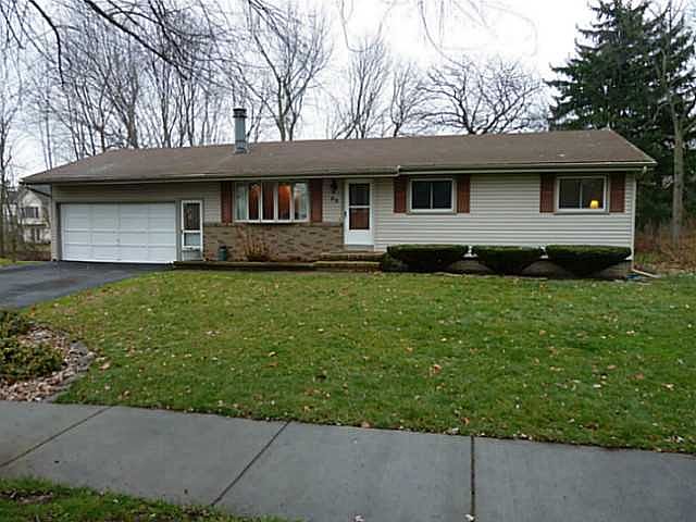 Super one level living! New vinyl siding and windows (except living rm) done in 2005! New driveway in 2012! Spacious oak kitchen with tile floor! Eat-in area with sliders to rear deck! Living room has a woodburning fireplace! 3 bedrooms with double closets- hardwoods exposed in 1 room- other 2 have carpet. More room in the walkout basement with a bedroom and full bath! Private rear yard with shed.