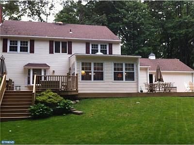 A little piece of heaven a very special place.This wonderful Doylestown Colonial nestled on 1.48 acres of lush landscape exhibiting private and isolated ambience, a true unsurpassed offering. This beautifully maintained home welcomes you with paver stone winding walkways,side porch entrance with paver circle enhancement. Enter to a tiled center hall foyer with open staircase,gleaming hardwoods thru-out 1st flr and second level. Newer Superior Wood Crafter kitchen with extended laundry room also completed by Superior.Premium appliances. An enchanting Sunroom, another place to enjoy the comfort of this home. This home has beautiful custom appointments throughout; French doors, upgraded custom millwork, newer windows, Lenox chandeliers in kitchen and dining room, and a totally new Master Bath. Exceptional quality. Totally fenced in property features Trex deck, Custom Pool with spa, cabana/storage,w/side deck. Partially finished basement. New Septic - Unsurpassed.
