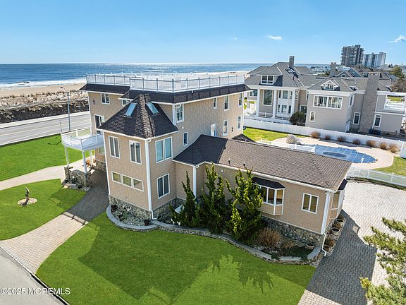 Welcome to this breathtaking oceanfront oasis, a rare gem nestled in the prestigious community of Monmouth Beach, NJ. Set on an oversized lot, this sprawling estate offers the ultimate in coastal living with unparalleled luxury and sweeping views of the Atlantic Ocean, the Shrewsbury River, and the iconic NYC skyline.