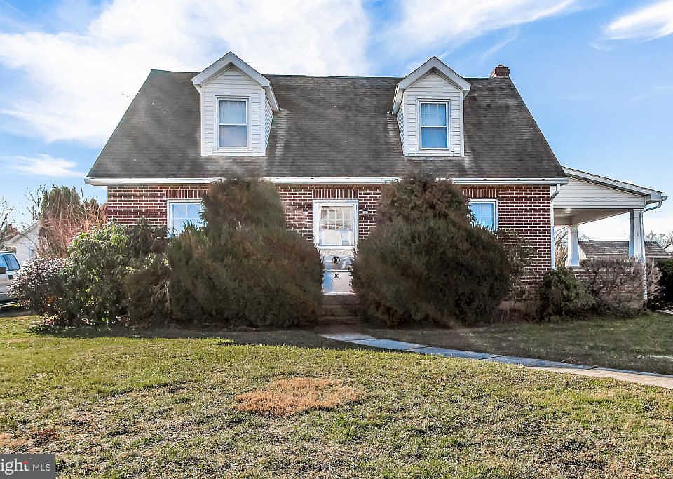 This nice brick cape features 3 bedrooms including one on 1st floor. Main floor offers living room, dining room, eat-in kitchen, bedroom and half bath. Upstairs you will find 2 additional bedrooms both with hardwood floors and closets and full bath. Basement is partially finished for rec room. There are 3 sheds, two car detached garage and side porch. Plenty of off-street parking. Nice level yard includes 2 additional land parcels for a total of .46 acre lot. Call for more info.