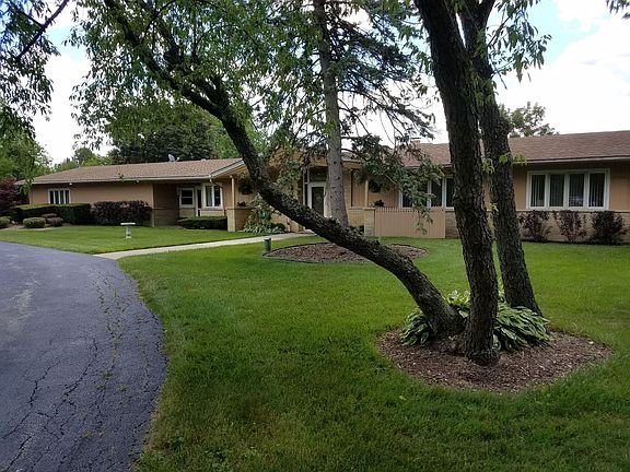 Mid Century Modern on 2 acres with hill top location over looking Forest Preserves to the South. Estate Sale being sold in "as is" condition. Kitchen was updated in 2010 with all new appliances. There are improvements and updating needed so the opportunity is here to recreate this house to suite your taste and needs. You will be hard pressed to find a better location. Large out building 30' x 35' at the back of the lot provides lots of storage or possibilites for horses.