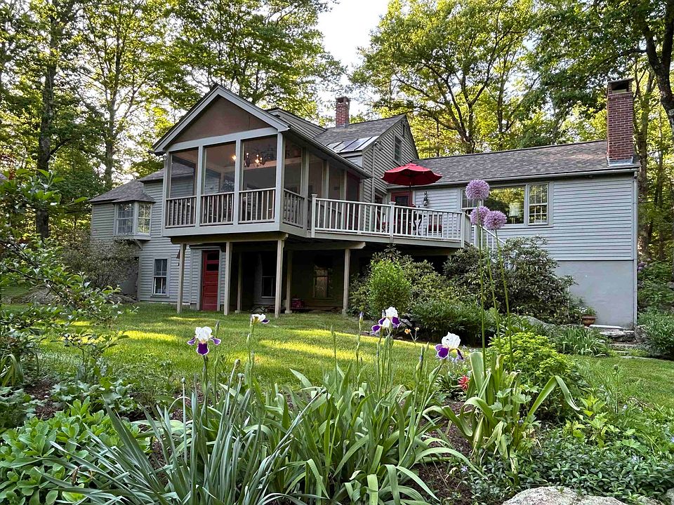 Returning to market after famiy wedding, In Hancock, near the historic village, on a lovely, picturesque country road, you will find this special property. Built in the 1950s, it has the feel of an antique home, but possesses recent amenities and systems. Sited on less than an acre, the landscape is quite simply beautiful -- from the Japanese Maples, to the hosta, the peonies, the iris, the lilacs and other plantings that can all be enjoyed from your spacious screened porch or from your open deck. The main floor is centered on the kitchen and dining spaces -- you can easily enjoy cooking and conversation with the open flow. To the right of the dining room, you will find a spacious living/family room with light on three sides, anchored by a gas stove for warmth and ambiance. On the opposite end of the main floor, you will find the spacious primary bedroom featuring a bay window with views of the landscape plus generous closet space. A second bedroom and full bath complete the main floor. On the upper floor, you will find two additional bedrooms plus a bath. Whether you need the bedroom space or want a cozy den, you have many options with this floor plan. Hancock is home to the Harris Center, and the region abounds with conserved land which is part of the 36,000 acre SuperSanctuary. Whether you love music, art, the outdoors, live theatre, nearby fine and casual dining, a great independent bookstore, you will love making the Monadnock Region your home.