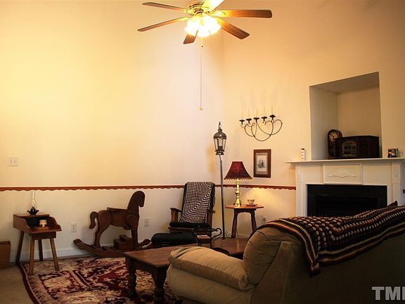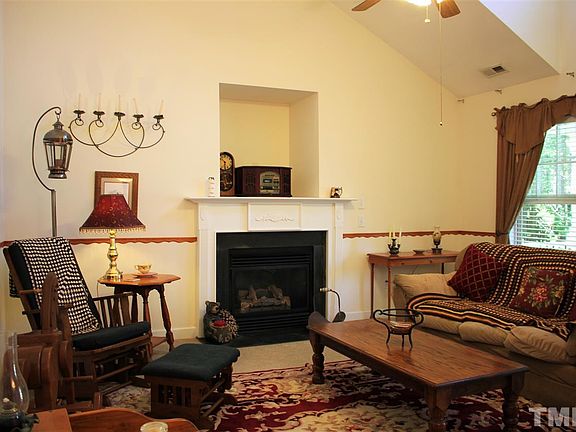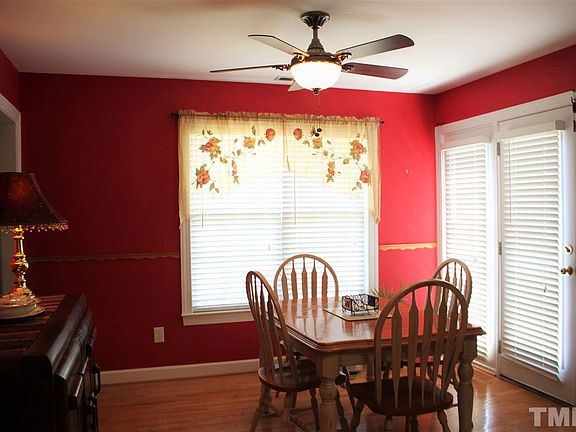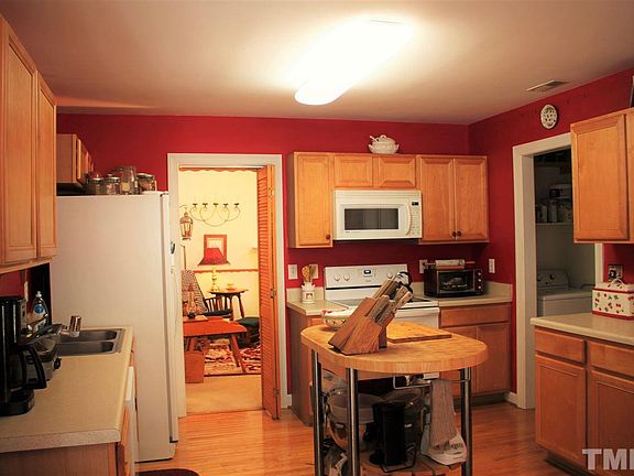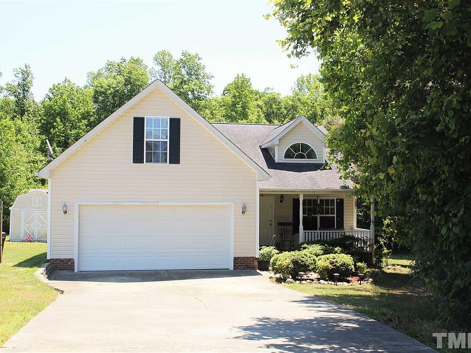 Cute little bungalow sitting five minutes from Wake Forest with over an acre cul-de-sac lot. Living room has cathedral ceiling with dormer window offering lots of sunlight, gas log fireplace. Kitchen has breakfast area, hardwood floors. Master bedroom is spacious with lots of sunlight and master bath has separate tub and shower. Covered front porch perfect for sitting and relaxing, oversized back deck great for grilling and flat back yard surrounded by trees. Side patio also. Shed and seperate workshop.