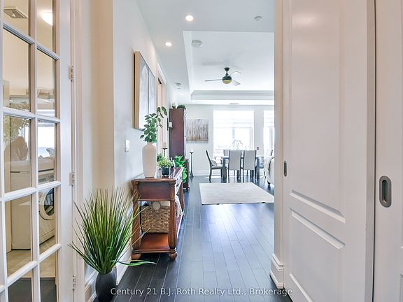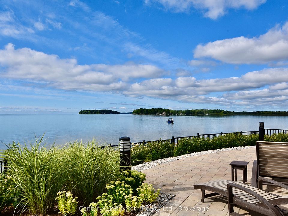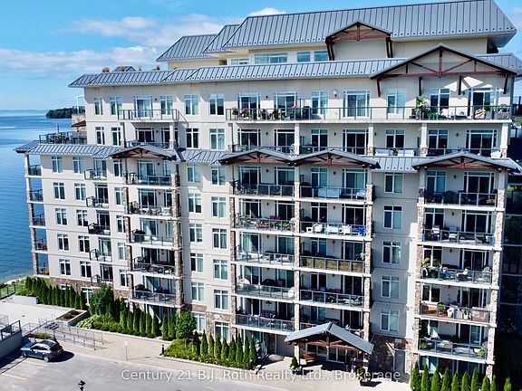Welcome to effortless waterfront living at its finest. This beautifully designed 1,262 sq. ft. condo is perfectly positioned at The Narrows in Orillia, offering panoramic southwest views and year-round enjoyment on Lake Simcoe. Step inside to find a bright, open-concept layout with soaring 10-foot ceilings, a high-end gas fireplace, and wall-to-wall windows that bring the lake right to your doorstep. The spacious great room flows seamlessly into a chefs kitchen featuring premium appliances, elegant finishes, and ample prep space, perfect for entertaining or simply enjoying the view while you cook. The grand primary bedroom offers the ultimate retreat, complete with its own spa-inspired bathroom. A second full bathroom adds convenience, and the generous den provides flexible space for a home office, creative studio, guest room, or even a second bedroom. Step out onto your oversized, ultra-private terrace and take in the stunning sunsets or your morning coffee with nothing but lake views and fresh air. This condo also comes with two underground parking spots and full access to exceptional resort-style amenities: a sparkling outdoor pool, hot tub, fitness centre, sauna, billiards, table tennis, rooftop lounge, library, hobby room, and elegant party space with BBQs. Hosting overnight guests? A private guest suite is available too. With beautifully landscaped grounds, a quiet shoreline, and dock rentals just steps away, this is lakeside living at its most refined. Located just 10 minutes from downtown Orillia and Casino Rama, and only 1 hour and 15 minutes from the GTA, this property is perfect as a full-time residence, summer home, or weekend escape. Come experience a lifestyle where every day feels like a getaway.