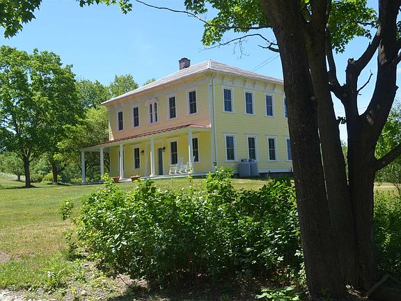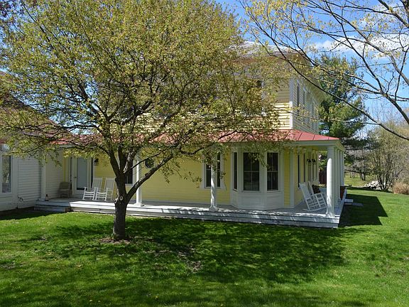 Wonderful opportunity to own a piece of paradise within minutes of Hudson, fabulous privacy, beautiful land and magnificent views. House is second to last on a dead end road, and on the high view field a completely private additional building lot. Original farm house has been updated with high end finishes and a spacious new kitchen area. Stunning octagonal enclosed porch overlooks beautiful pond, large master bedroom and three additional bedrooms on second floor. House is very well built and retains antique charm with high ceilings, wideboard original pine floors, pocket doors and fireplace. Modern conveniences include whole house generator, whole house vent fan through attic, updated windows and new appliances in kitchen. Two separate garage buildings with unfinished studio spaces above. A total of 6 cars storage, both buildings have power. Divine farm land property with abundant fields, sufficient woodland for forestry, existing fruit trees and fabulous chicken housing.