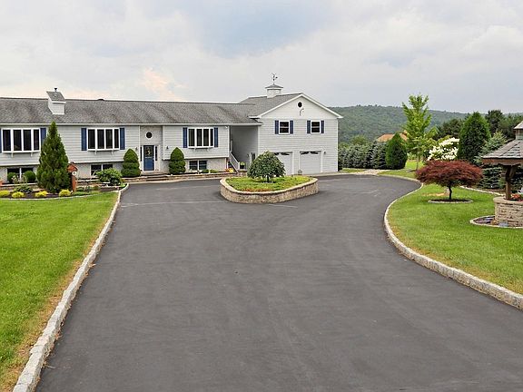 MOTIVATED SELLER! TRULY SPECTACULAR Privately Gated Custom Built Extended 3BR 2BA Bi-Level Home Offers FULLY FINISHED WALK-OUT BASEMENT w/ DEN, Impressive HOT TUB & SAUNA ROOM Plus BONUS 25x29 GAME ROOM Above Over-Sized 2-CAR GARAGE Situated on Incredible ZEN OASIS Featuring 40x20 Stacked Stone POND w/ 2 WATERFALLS on Park-Like 2.82 ACRES Setting w/ Great Mountain Views! Entertain on Massive 70x15 TREX DECK! Home Offers Open Layout Modern Eat-In Kitchen w/ GRANITE COUNTERS, 2 Islands & OAK HARDWOOD! Living Room w/ Stone Fireplace! MASTER SUITE has Cathedral Ceilings, FIREPLACE, Custom Built-In Dressers & Boroughs w/ Private Entrance to Deck! LL FAMILY ROOM w/ Stone Hearth, DEN w/ Built-In Desk Plus 2 Bedrooms & Walk-In Cedar Closets! Walk-Out Leads to 70 ft PAVERSTONE PATIO!
