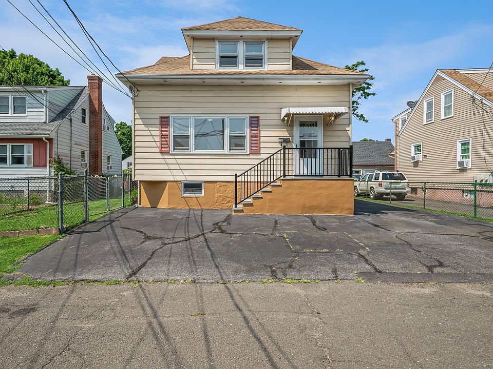 Completely updated 2 family home. New kitchen with quartz counter tops, Formal dining room and living room on the first floor with hardwood floors. 2 bedrooms , new bath. 3 closets in the foyer. The second floor has an updated bath and kitchen. Berber carpet. Lots of closet space. New HVAC with two gas hot water heaters. 2 electric meters, new washer and dryer. Beautiful new trek stairs and balcony. New fence 1 car garage. Parking for 4 plus cars . Fabulous location on a cul-de-sac. Walk to Cove Beach, Chelsea Piers, 5 minutes to downtown Stamford and Metro North.