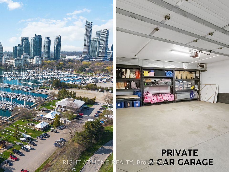 Live like youre on vacation every day at South Beach Condos, where luxury and lifestyle come together seamlessly. This rare offering includes something almost unheard of in condo living: your own PRIVATE, HOUSE-SIZED 2-CAR GARAGE with a dedicated door that opens just like a traditional garage. With plenty of extra space for storage and impressive floor-to-ceiling steel shelving, its perfect for everything from outdoor gear to seasonal itemsoffering the kind of convenience, security, and space that most condo owners only dream of.Inside, this SUN-SOAKED 2 BEDROOM + den suite impresses with over 1,000 SQ FT OF INTERIOR SPACE and an additional 240+ SQ FT WRAP AROUND BALCONY boasting PANORAMIC SOUTH WEST of the lake and Toronto skyline. Floor-to-ceiling windows flood the open-concept layout with natural light, creating an inviting space thats perfect for entertaining or unwinding. The kitchen is both sleek and functional, featuring granite counters, built-in stainless steel appliances, a large island with a breakfast bar, and modern cabinetry with plenty of storage.A separate dining area and enclosed den with frosted sliding doors offer flexibility for a home office or even a third bedroom. The smart split-bedroom design provides privacy, while the primary suite features a walk-in closet with custom organizers and a contemporary ensuite. Two full bathrooms and stylish finishes throughout make this a place youll love to call home.Step outside and enjoy South Beachs unmatched amenities: indoor and outdoor pools, hot tubs, spa, sauna, full fitness centre, basketball and squash courts, a theater, party rooms, co-working spaces, guest suites, and more. With 24-hour concierge service and a stunning hotel-style lobby, every detail is designed to elevate your everyday.Located just steps from the waterfront, transit, shopping, and parksincluding a dog parkand with the upcoming Park Lawn GO Station nearby, this is more than a condo. Its a complete lifestyle.