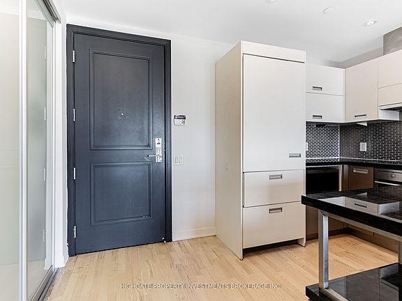 This Spectacular 1 Bed + Den Features Include A Modern Kitchen With Integrated Fridge, Black Granite Counters, Contrasting Back Splash And Ample Cabinetry. Sun Filled Living/Dining Spaces With W/O To Balcony, And Warm, Rich Hardwood Flooring Throughout Living Spaces. Floor To Ceiling Windows In Master W/ W/I Closet, And Sliding Frosted Pane Doors. Modern Washroom With Marble Floors And Vanity.