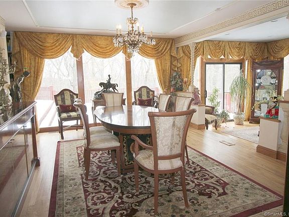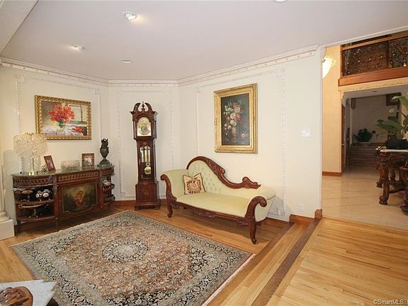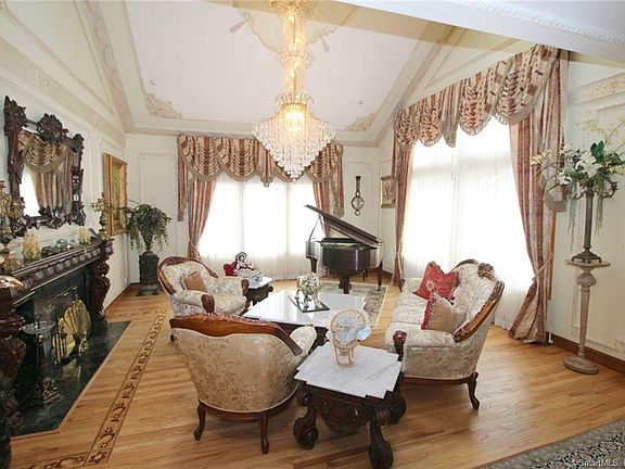 Architecturally stunning, masterfully crafted contemporary set on 1.5 wooded acres on a country road in prestigious North Stamford. A must see unique home with finest of European craftsmanship, upscale materials and the old world details. Grand entry foyer with frescoed ceiling opens onto a lavish old world style living room with marble fireplace, inlay floors, and elaborate moldings. Banquet sized formal dining room overlooks a garden room with fountain. Oversized eat-in kitchen leads to an expansive 3 tier deck with full outdoor kitchen overlooking in-ground pool, terrace gazebo and woodlands. Spectacular family room with carved fireplace and dramatic 18 foot ceilings opens onto a tranquil greenhouse. Generous sized first floor bedroom with cedar closet and large updated bath. Graceful iron stair case leads to most romantic primary bedroom suite with marble fireplace and balcony, two huge walk-in closets and luxurious show stopping spa bath with steam shower and oversized bath tub. Serene, second floor lounge with balcony overlooks the living room. Three additional family size bedrooms plus three more stylish baths complete this floor. Private third floor with huge office or studio plus additional bedroom and bath. Fully finished lower level finished for casual entertainment with billiard room, fireplace and wet bar. This masterpiece of a home cannot be duplicated and offers once in a lifetime opportunity to fall in love! Custom European furniture could be sold separate.