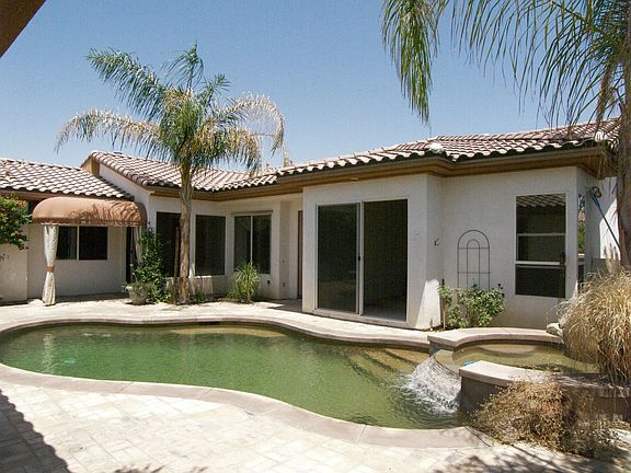 Walk to El Paseo from this expansive home with 2,986 square feet of interior living space, including 5 bedrooms and 3.5 bathrooms. Lot is over 8,700 square feet with entrance gate leading to your very own private Pool and Spa with waterfall feature, built-in BBQ and ample room to relax. Marble flooring throughout main living area with high ceilings, spacious chef's kitchen with lots of countertops, maple wood cabinets, 3 a/c zones and a full 2 car garage. Palmira development is a gated community just minutes from El Paseo, the Rodeo Drive of the desert, and within a mile from outstanding schools, including Sacred Heart School; across the street. Close proximity to fine restaurants, shopping, exclusive golf courses and the international Tennis Garden of Indian Wells. Put your personal touch on this spacious home and start living the desert lifestyle of fun, sun and relaxation.