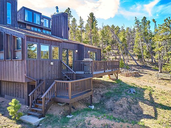 WHAT A VIEW. Great location perched above Nederland bordering National Forest on the most westerly lot in Big Springs. Great access to Eldora and Nederland with a feel of privacy. A truly unique home with great spaces. Open floor plan throughout. Double sided gas fireplace in Living Room and Dining Room. New sliding glass doors in the Living Room and some new windows in the kitchen. New 3 bedroom septic. Exterior outlet for Electric Car. Usable land with hiking out your door, or walk to Town. Lots of natural light. Home has been well taken care of.