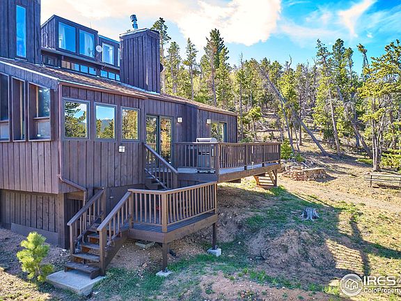 WHAT A VIEW. Great location perched above Nederland bordering National Forest on the most westerly lot in Big Springs. Great access to Eldora and Nederland with a feel of privacy. A truly unique home with great spaces. Open floor plan throughout. Double sided gas fireplace in Living Room and Dining Room. New sliding glass doors in the Living Room and some new windows in the kitchen. New 3 bedroom septic. Exterior outlet for Electric Car. Usable land with hiking out your door, or walk to Town. Lots of natural light. Home has been well taken care of.