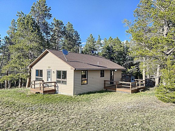 This 1 bedroom 1 bath (3/4) charming cabin is so well built and has all the convenience of living in town but the bonus of the mountain and is situated on 5 acres of private land in the Top of the Rockies Subdivision. It along with a second guest house are nestled amongst beautiful trees, but also boasts spectacular views of the Big Horns. It features an open concept floorplan, lots of closet space and a shed for all of your toys. This property has well and septic and can be easily accessed, The property is situated not far off of Highway 16 and is only about 30 minutes from town. Come check it out today! There are3 baths-1 3/4 Main 1-1/2 Bath Guest house and outhouse. There are actually 2 Bedrooms with the guest house and main house.