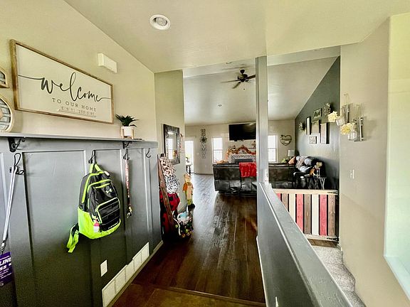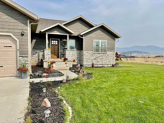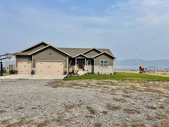Welcome home! Custom home on 5.37 acres. 7 years old and well maintained. Great room divides the 2 bedrooms, one bath from the master bedroom en-suite. Main floor laundry & mud room accesses the attached and insulated, triple-car garage. Downstairs features another 2 bedrooms, 2 bonus rooms, and full bath along with a family room and media room. Deck off the kitchen dining room has fabulous views of Butte Area. Wildlife in area, pond, fire pit.
