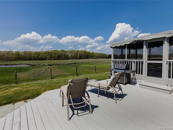 Beautiful Custom Cape with Million Dollar views. Launch your kayak or small boat into Haydens Creek/Hammonasset River, or just enjoy the abundant birdlife from the two level deck and stone patio. Its like watching a nature movie year round! This cozy home has been completely renovated from top to bottom, and is a cut above in quality, design, and custom built-ins. Using only the finest materials, the open floor plan boasts custom kitchen and living room cabinets, lots of natural light, and beautiful views that bring the outside in. A wainscoted den with built-in bookcases and 1/2 bath are also on the main floor. Either of the large bedrooms, each with its own beautifully appointed full bathrooms, can be used as a master suite. One bedroom is on the main floor, the other on the second floor. There are two outbuildings: a large shed with heat and electricity that can be used for storage and/or a workshop, and a shed for gardening tools and storage. This lovely home is located close to Town Beach, Hammonasset State Park, shopping, and highways. A MUST see!