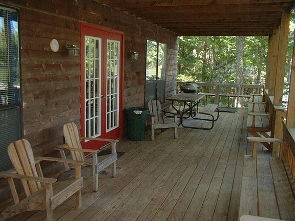 Rustic 4 bed/2.5 bath with 375 feet waterfront, great view and swimming, 21 adjoining acres with big trees and lots of privacy.