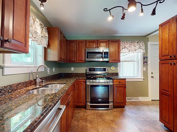 Charming 2-bedroom Ranch on a private ¼ acre parcel of land! Completely remodeled one level home with hardwood floors throughout. The kitchen boasts stainless steel appliances, granite countertops and custom cherry cabinets. Cozy up in the living room to a warm fire in the wood burning brick fireplace or entertain friends & family in the formal dining room. The attached one car garage enters into a large, tiled mudroom perfect for all your boots & winter clothing. The full basement is great for additional storage space! Hang out and enjoy the sun on the front deck in the warmer months or spend time outdoors in the scenic & spacious backyard.