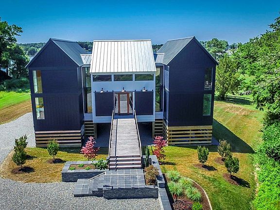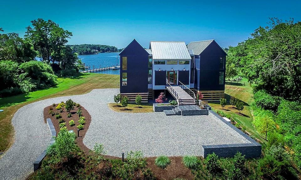 Majestically perched above Carter Creek with views of the Rappahannock River, this custom home boasts uniquely inspired design and an open floor plan which is flooded by the evolving light patterns of the day and night. New high-end design by Architect Randall Kipp whose legendary flair for style and attention to detail are evident everywhere. If one were to build a modern chateau on the water, this would be it! The zen garden prepares you for the serene luxury that you will enjoy inside. The inspirational use of light and the creative and careful use of materials and space is evident everywhere. Gallery windows throughout the home maintain an unparalleled warmth and comfort. The open kitchen with plein air dining area provides a fabulous entertainment venue with great transparency to the water view - one of a kind. This home is 3206 square feet with radiant heated porcelain tile on the 1st floor and Heart Pine on the 2nd floor. From the motor court, enter into a 2-story great room/kitchen with a whale bone roof structure and Spanish Cedar paneling. The large panes of glass offer a panoramic view, the HVAC is geothermal, all glass is thermally insulated and the exterior materials provide years of minimal maintenance. Income-producing vacation rental.