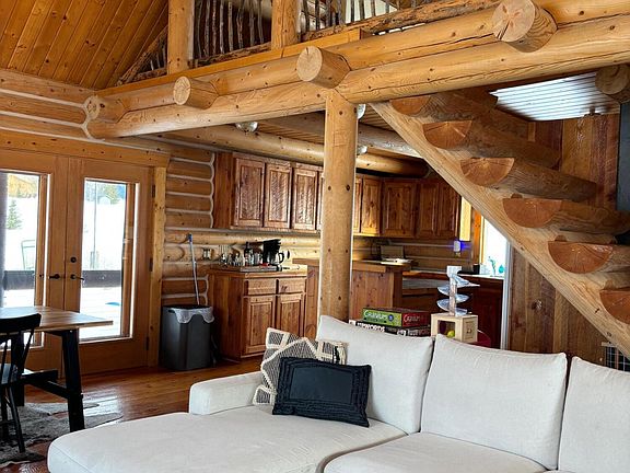This 4 bedroom/ 2 bath log home features an open floor plan, cathedral ceilings and multiple living spaces on two scenic acres with no CCRS or HOA fees. Enjoy the mountain views on the large covered back porch or spend the night in the immaculate backyard dome. Built in 2003, this NeVille Log Home out of Montana offers ample kitchen space with circle sawn fir hardwood floors and cabinets and two efficient propane fireplaces. The property is fenced with a 10 x 20 bully barn building with electricity, a separate garden shed, and crystal clear well water, just 10 minutes south of Alpine. Sold fully furnished! Currently the property is being rented out nightly. The home has a transferable mortgage at 2.875% for veterans!