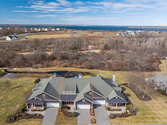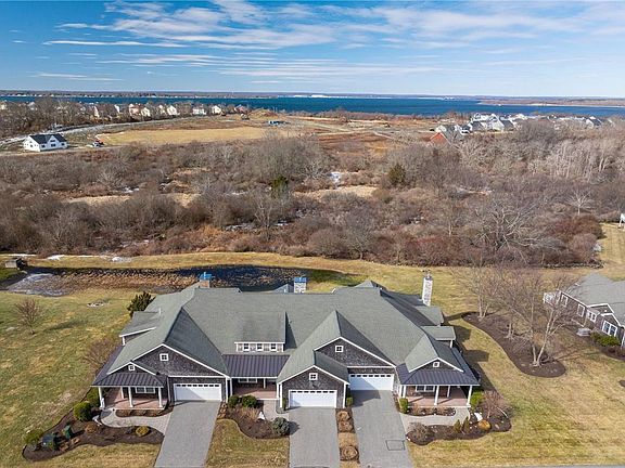 Welcome to 90 Rebels Way in the highly sought-after Prescott Point! This charming residence offers a blend of style, comfort, and convenience, perfect for those seeking a low-maintenance lifestyle. The inviting front porch leads to your private entrance and a foyer with high ceilings. Enjoy one-level living with an open floor plan connecting the kitchen, dining, and living areas. West-facing windows fill the space with natural light and offer views of preserved land and stunning sunsets. The living room features cathedral ceilings and a gas fireplace, with access to a private deck. The kitchen boasts upgraded cabinets, granite countertops, stainless steel appliances, and bar seating. The primary bedroom includes a private deck, two spacious walk-in closets, and an en-suite bathroom with a beautifully tiled shower with a custom bench and double sinks. Hardwood floors grace many rooms, with cozy carpet in the two bedrooms. A second bedroom is perfect for guests, and an additional den or office adds versatility. With a 2-car garage, central air, and gas heat, this home ensures a convenient lifestyle. Professionally managed, you'll never worry about snow removal or lawn care. Minutes from Middletown, Newport, and beaches, this location offers easy access to local attractions. Exciting community amenities are on the horizon, with a clubhouse, pool, and tennis/pickleball facilities being added to Prescott Point.