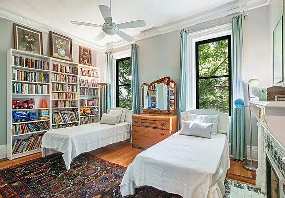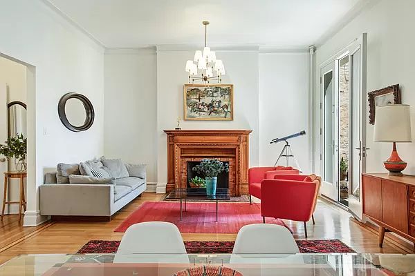 ROMANESQUE REVIVAL ON REMSEN This full floor apartment with 6 rooms, 3 beds, 2 baths and a home office is approximately 1600 sf with 11' ceilings in a stunning 25' wide Romanesque Revival townhouse on beautiful Remsen Street in Brooklyn Heights. Light streams in through huge windows and floor to ceiling glass doors to a balcony overlooking Grace Court Alley gardens. Original hardwood floors and two fireplaces add to the pre-war charm. The unit is a combination of two apartments, with a layout providing maximum privacy for work, relaxing and rest. There are large bedrooms on each end, a huge living dining area, kitchen and home office with washer dryer in between. The CAC unit on the balcony cools half the space and could be expanded. The elevator opens to a large landing and there is bike storage in the basement. New boiler and main entry hall redecorating are in process now that work rules are restored. This 6 unit co-op is self-managed, with a low maintenance and an excellent super. Pets and subletting are allowed on approval.