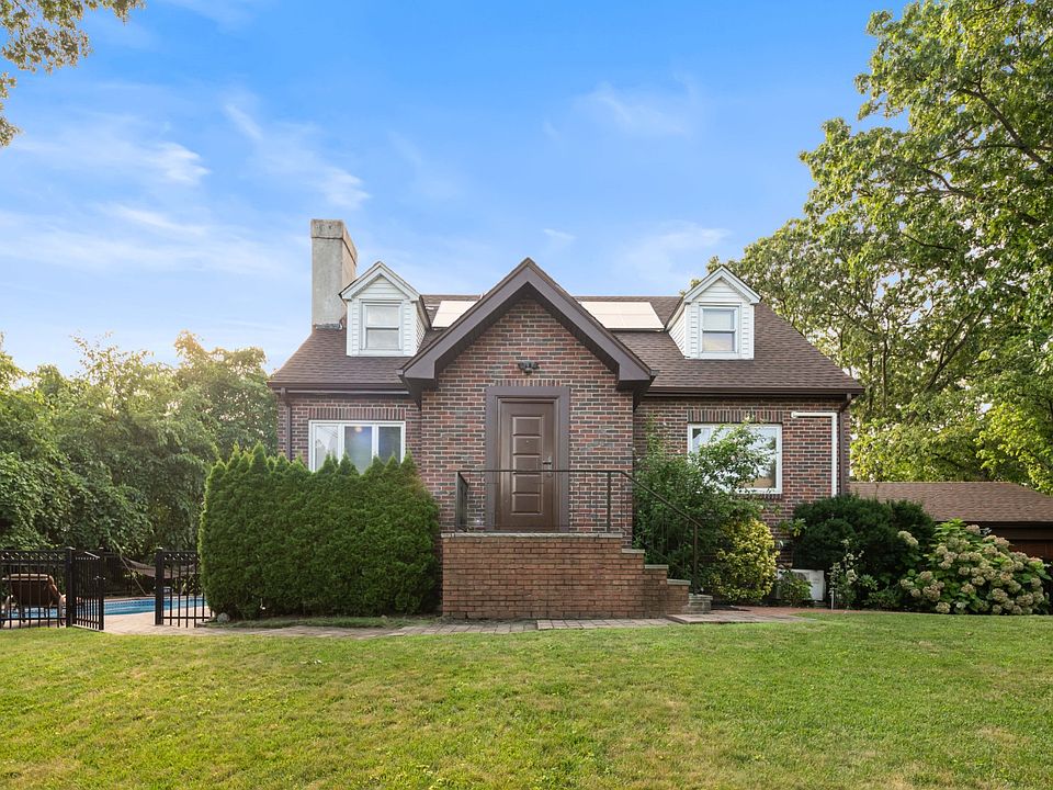 Welcome to this remarkable residence located on top of the hill in Dongan Hills Colony. This extremely gorgeous full brick cape home is adorned with custom details and luxurious finishes, adding style and sophistication to this very private home. This one family home sits on a spacious 10,000 sqft lot. Entertain family in a formal spacious living area with hardwood floors while having guests stay relaxed near the fireplace. Enjoy cooking in a fully renovated eat-in kitchen which features custom tile flooring, stainless steel appliances and beautiful custom cabinets. Separate from the kitchen is a modern dining area. This house is filled with warm lighting throughout and complete serenity while taking in the view from every window. Passing the entry foyer, walk up the resplendent staircase, on the second floor features two prodigious bedrooms all with their own closet space and one spa-like bath. The basement offers a large recreational room, gym area, laundry room, bedroom, full bath with an amazing sauna for skin rejuvenation and other health benefits. This home is substantial with traditional emblem, hardwood and tile floors, and extremely capacious. The side and back yard is just exquisite, it's your very own private oasis including a deck overlooking nature at its finest, an outdoor dining area, a beautiful manicured lawn, and glistening in-ground pool surrounded by tall oak trees.