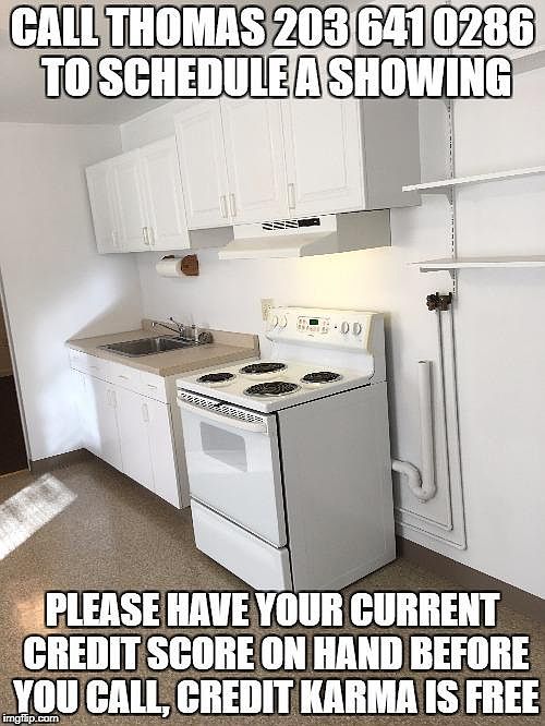 Nice, very clean one bedroom apt. 3rd floor in a safe building located on a quiet one way street. New carpets + floors + paint, beautiful. Washer hook up, plenty of closet space, 1 full size walk in closet, 1/2 walk in closet and 1 coat closet . Full credit check + security deposit. NO PETS, NO SMOKERS . If you still see this ad, the apartment is still available. To save us both some time, PLEASE HAVE YOU CURRENT CREDIT SCORE ON HAND WHEN YOU CALL (credit Karma is free) I do not return emails or messages that you leave on this site or other sites. The only way to see this apartment is to call me directly at 203-641-0286 between 6 am and 6 pm only, please have your Current credit score on hand because I will ask.
