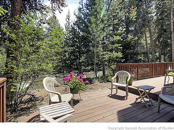 Listen to the Ten Mile Creek from this beautiful residence in the heart of Frisco. One block from Main Street in very quiet sought after community. Never rented and meticulously cared for, this is a true gem. Brand new roof and completely furnished, your dream home is ready to start enjoying this summer. Main level has guest bedroom with huge Master Suite on upper level. A true must see property.