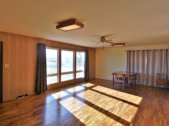 Country living close to town with this 4 bedroom 2 bath home on 11.70 acres. The 1120 sq' main level of this home consists of a kitchen, dining area, living room, 2 bedrooms, and a bathroom. The kitchen has been recently remodeled with updated cupboards, countertops, and flooring. The living room has beautiful hardwood flooring and the large windows offer views of the property and the badlands. The 1120 sq' full basement consists of a family room, 2 bedrooms, bathroom, utility/laundry room, bonus room, and storage. Recent improvements include updating of the bathrooms, new drain field, insulation, and propane furnace. The property is perimeter fenced, has an artesian well, and has a single stall garage with storage. Figures are +/- and all information provided is deemed reliable but is not guaranteed and should be independently verified.