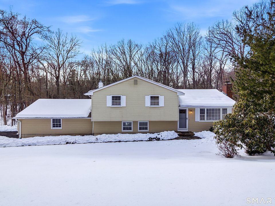 Discover the perfect blend of privacy and modern comfort in this thoughtfully updated split-level home. Situated on a lush 1.4-acre wooded lot in a quiet residential neighborhood, this property is truly move-in ready. The heart of the home is a stunning great room featuring soaring cathedral ceilings, a cozy gas fireplace, (Never used by current owners) and rich Brazilian cherry hardwood floors. The open-floor plan flows seamlessly into a formal dining or living area-anchored by a second fireplace-and out onto a massive rear deck designed for summer entertaining. The lower ground level offers a versatile family room, a convenient half-bath/laundry combo, and direct access to the expansive backyard. Don't miss your chance to own this turnkey gem! Professional Photos and Interior Photos will be uploaded over the weekend. Sale is Subject to the Sellers Finding Suitable Housing and Actively Looking.