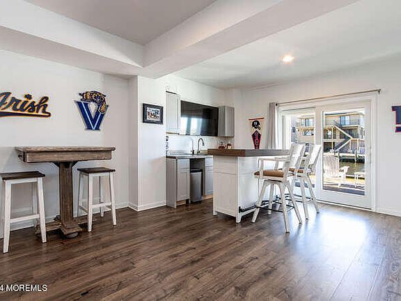 Additional amenities include an ample tandem garage open front and back featuring epoxy flooring, a new bulkhead and dock installed in 2020, vinyl fencing, and an underground sprinkler system for easy lawn maintenance.